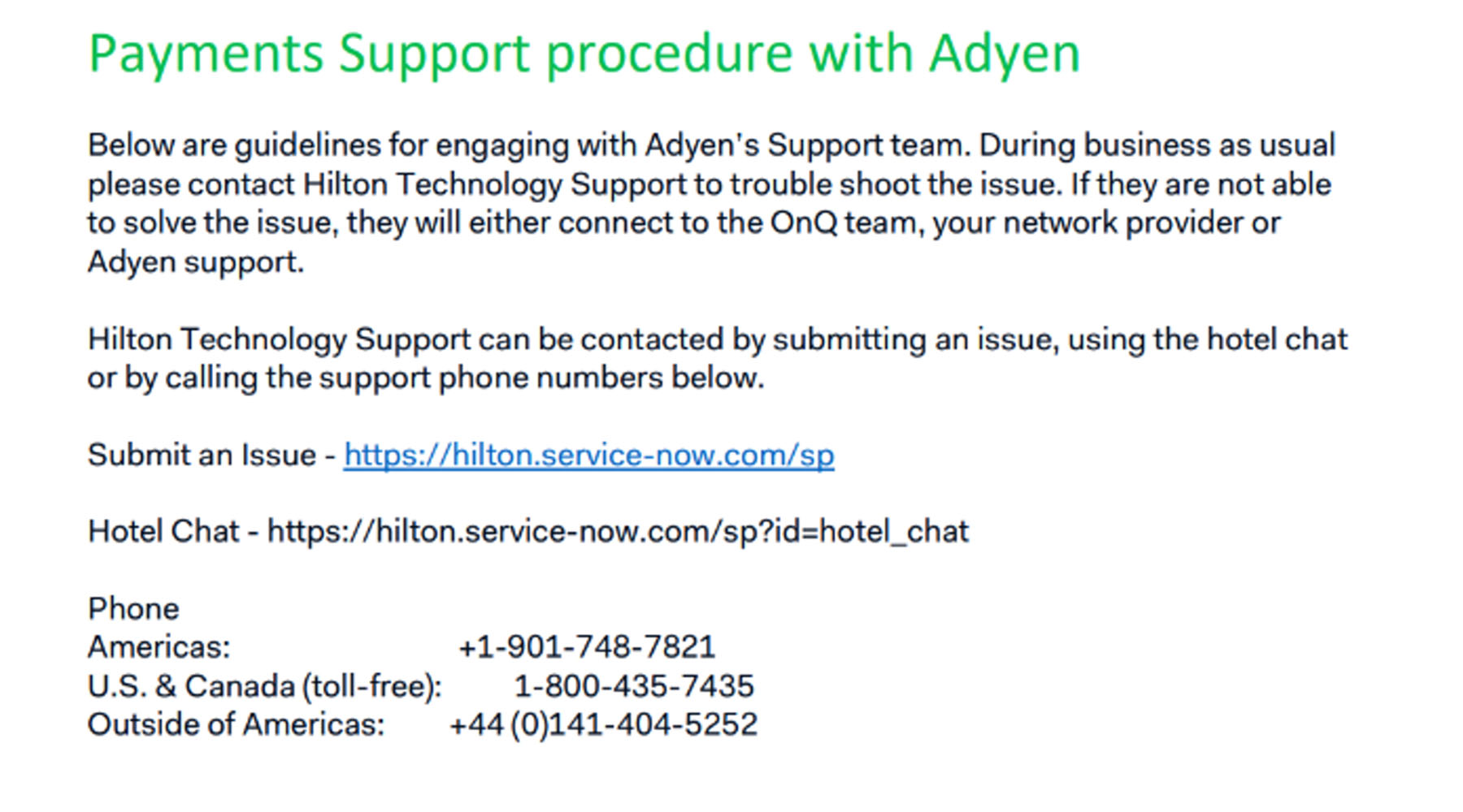 Adyen Payments Support Procedure