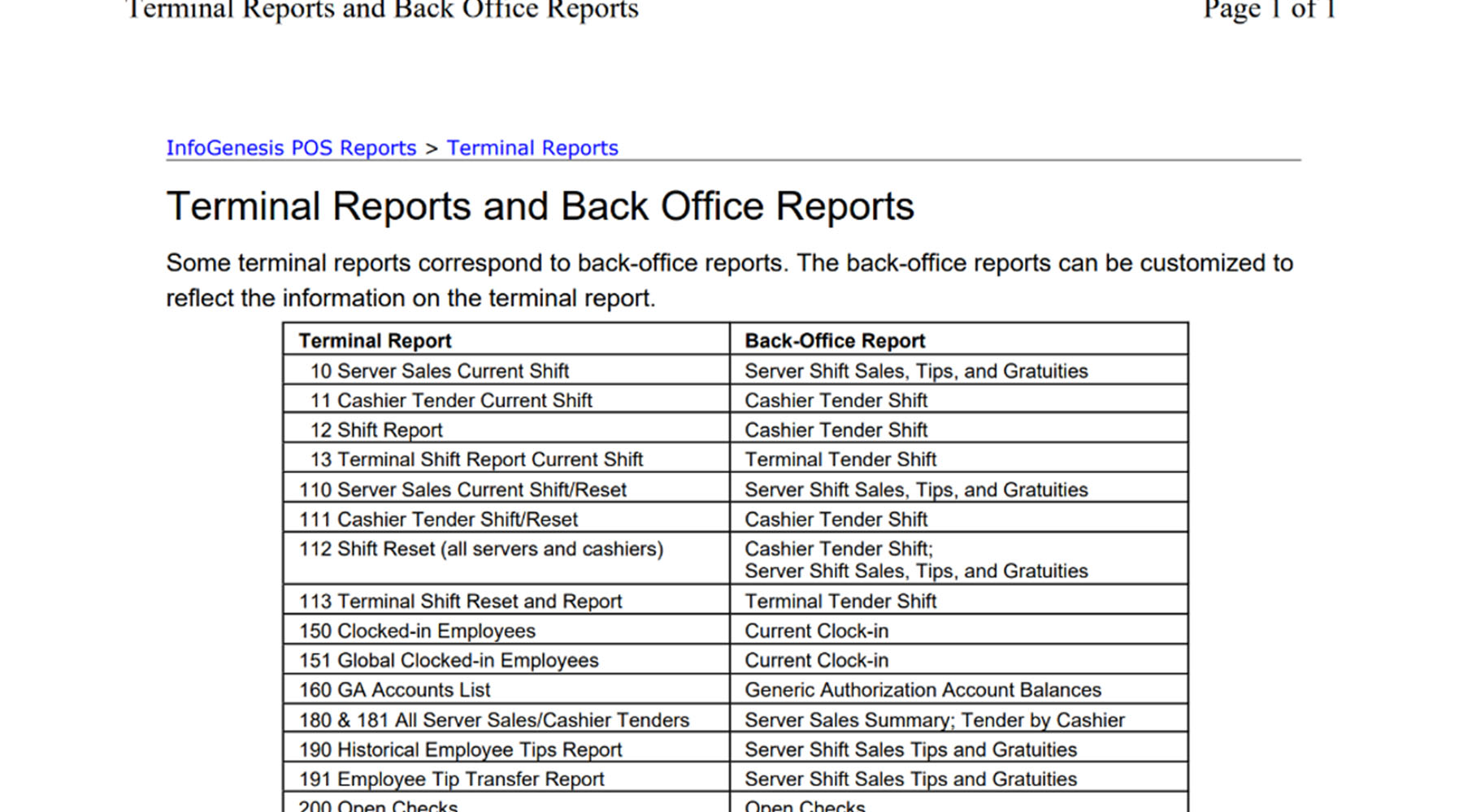 Agilysys IG Terminal Reports List